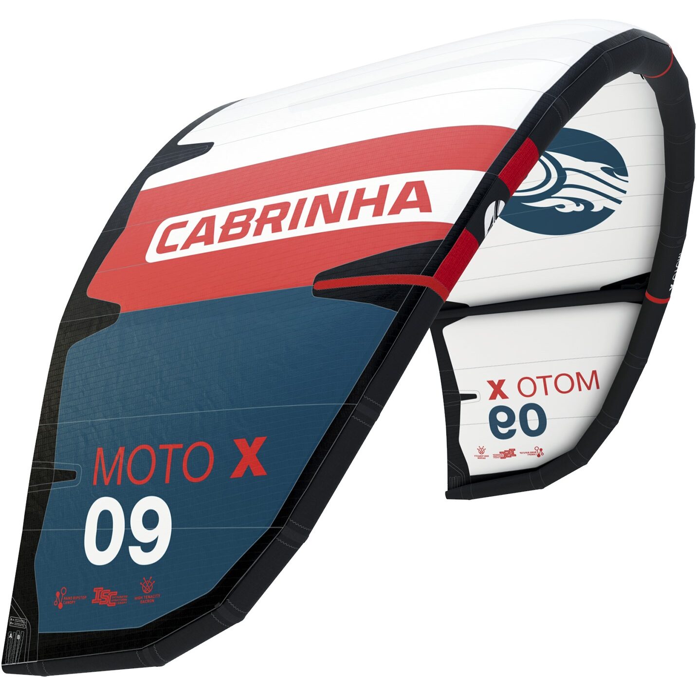 Cabrinha confeccionó la capota del Moto X con Nano Ripstop Canopy. Esta capota contiene más hilos, mejorando la rigidez y durabilidad del tejido, proporcionando una sensación más directa en la barra. Las líneas tienen menos estiramiento para soportar esta sensación más directa. Se utilizan listones rígidos de EVA en el borde de fuga para evitar que el dosel se agite. Se agregan parachoques de TPU duraderos para proteger el borde de ataque durante choques intensos de cometas.